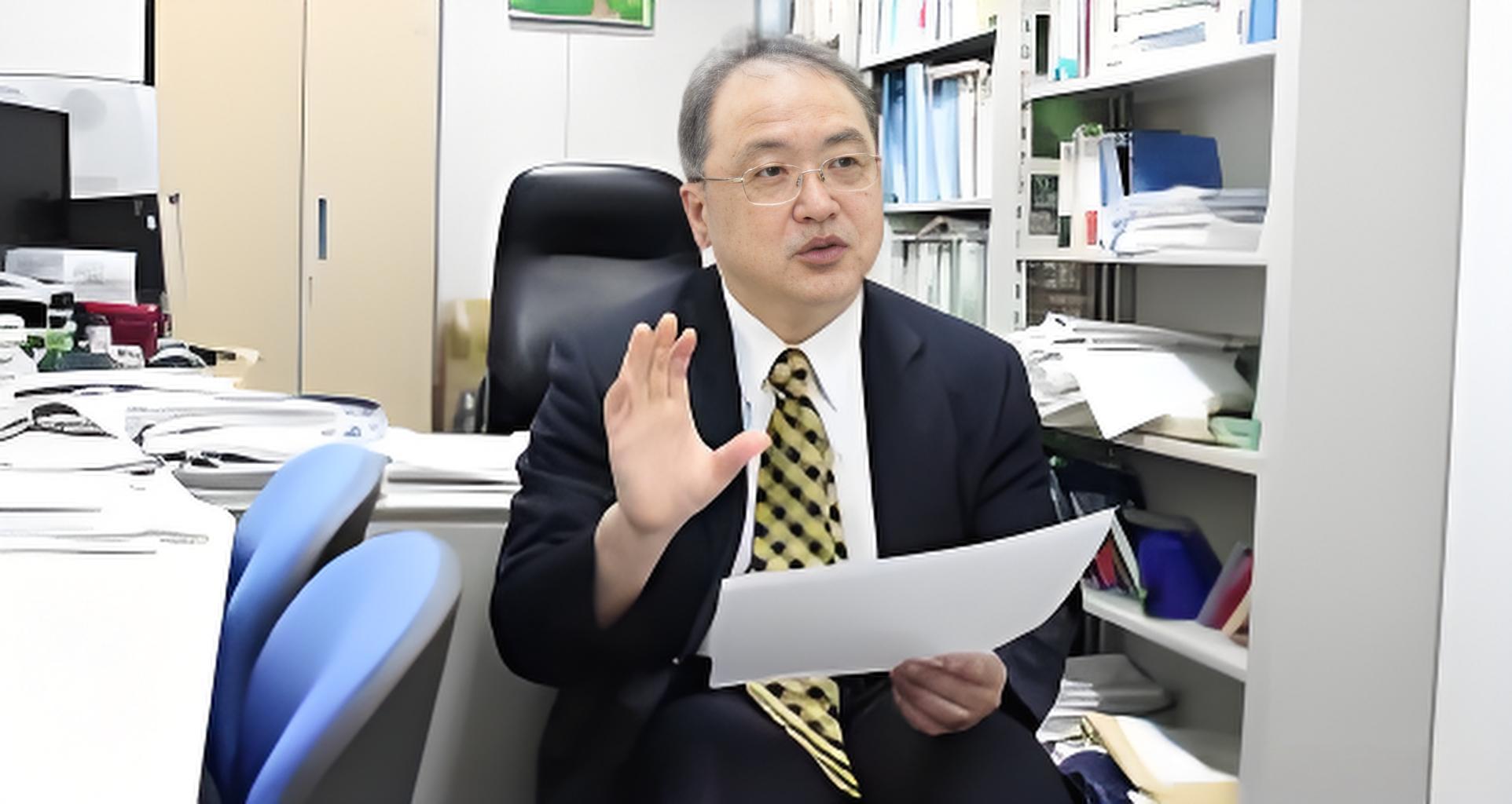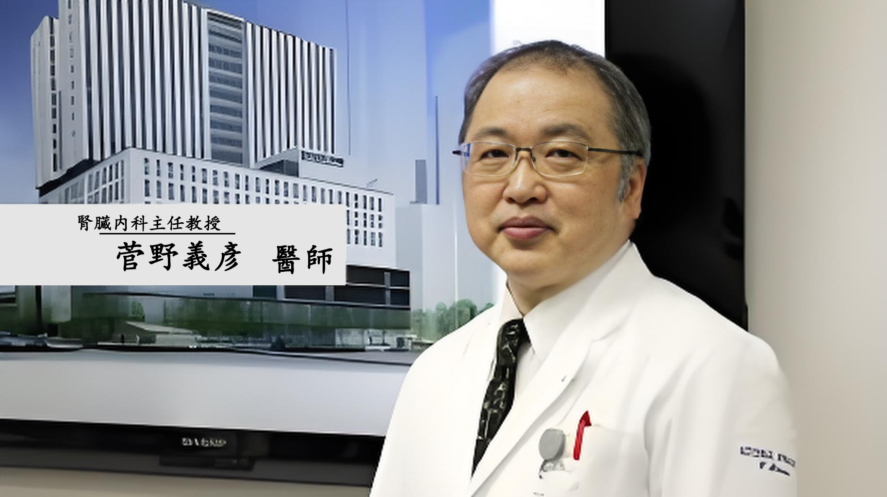 菅野義彥醫師於醫院辦公室科普腎臟知識